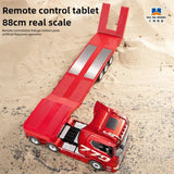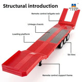Expand your 1:18 worksite with the HUINA 1502 RC Flatbed/Semi Trailer—a three-axle pallet-style trailer designed to pair perfectly with the Huina 1501 (770S) RC Tractor Truck. Pre-painted in Grey or Red, it includes powered supports and a powered tailboard for realistic coupling and loading.